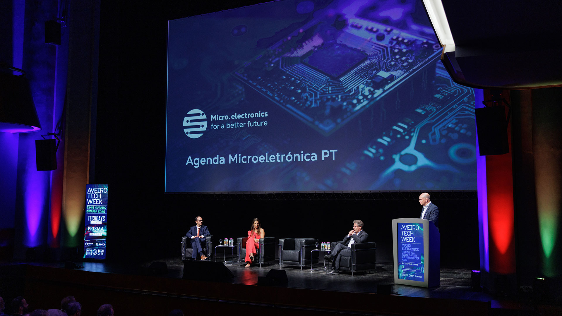 Um evento completo, desde a criação da identidade gráfica até a consequente comunicação online e offline. Aqui promove-se o debate sobre o futuro de Portugal no mercado dos semicondutores e microelectrónica. O evento realizado a 3 de Outubro de 2023 incluiu também a acreditação, logísitca (check-in, equipamento de som e imagem, catering, reservas de alojamento dos convidados), assessoria de imprensa e livestream do evento.