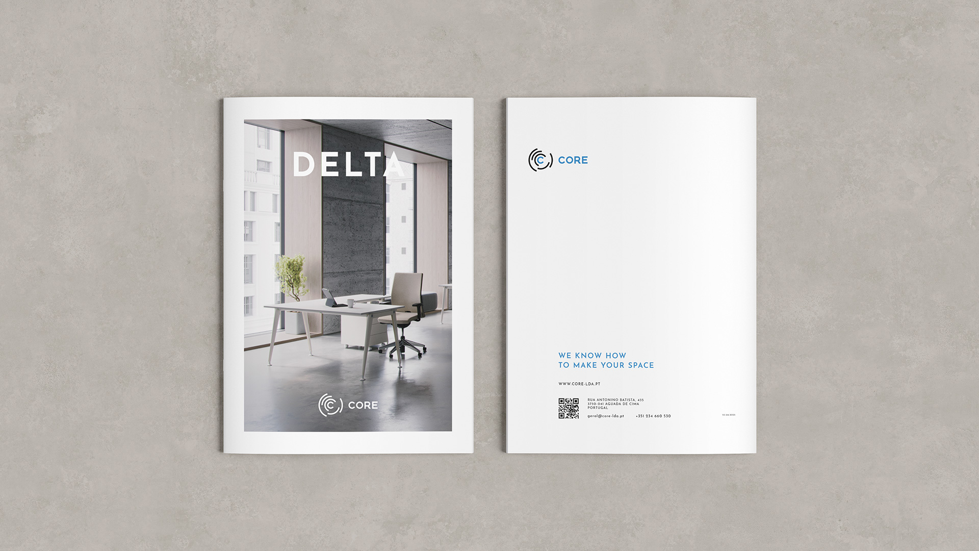 A nova brochura de produtos Delta da Core conta com máxima atenção ao detalhe e visão estratégica. Esta peça de comunicação prima pela funcionalidade, minimalismo e pela clareza na apresentação desta gama de mobiliário em 4 idiomas. Conta ainda com imagens CGI que valorizam a aplicação dos produtos em contextos funcionais e modernos com um excelente grau de realismo.